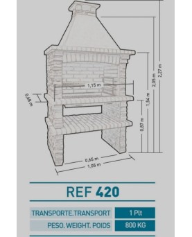 Barbacoa Ref 420 per a llenya i carbó, amb graella regulable a tres alçades i calaix de cendra inclosos.