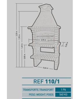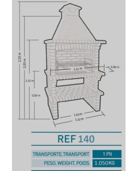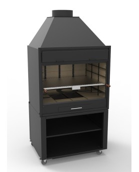 El forn està revestit amb acer inoxidable i inclou una safata i un adaptador per a safates més petites i termòmetre. Les dues portes inclouen vidre vitroceràmic per veure tant el foc de llenya com la cocció de l'aliment i incorpora calaix i recull cendres. La barbacoa disposa d'un sistema de regulació per pujar o baixar la graella en acer inoxidable de tipus argentina, a més inclou un suport paeller, maó refractari al lateral i al fons, calaix recull cendres i la sortida de fums és de 300mm.