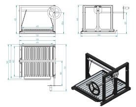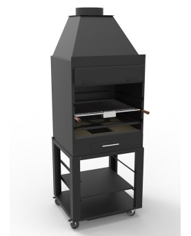 Barbacoa Ref 110/1 per a llenya i carbó, amb graella regulable a tres alçades i calaix de cendra inclosos.