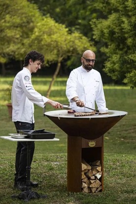 Les barbacoes Clementi estan equipades amb graelles i un calaix recollidor de cendres, i poden utilitzar tant llenya com carbó vegetal com a combustible. Amb la llenya, podràs donar un sabor únic als teus aliments, mentre que el carbó vegetal és perfecte per a coccions més ràpides.
