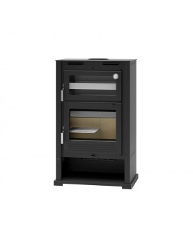 Agorà és una estufa de llenya de ferro colat d'alta qualitat, que ens sorprèn amb una placa de cocció amb forn que desapareix