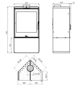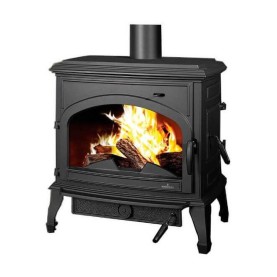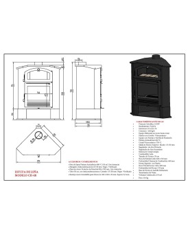Estufa de llenya fabricada amb fosa d'alta qualitat, amb sistema de doble combustió i ecològica. Equipada amb un eficaç sistema de vidre net per a una visió perfecta del foc durant dies.