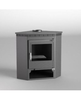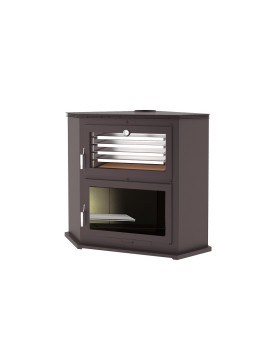 Estufa de leña rinconera con interior de vermiculita y horno de acero inoxidable M-106 R